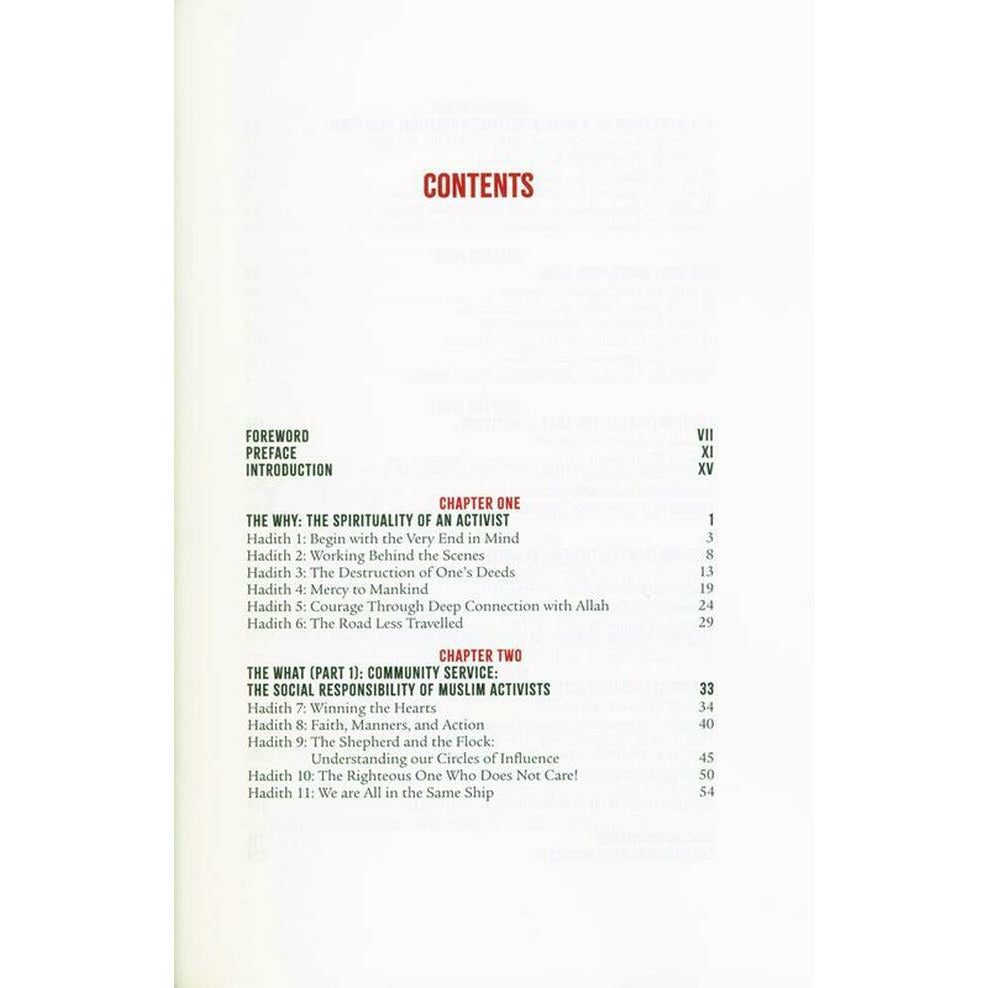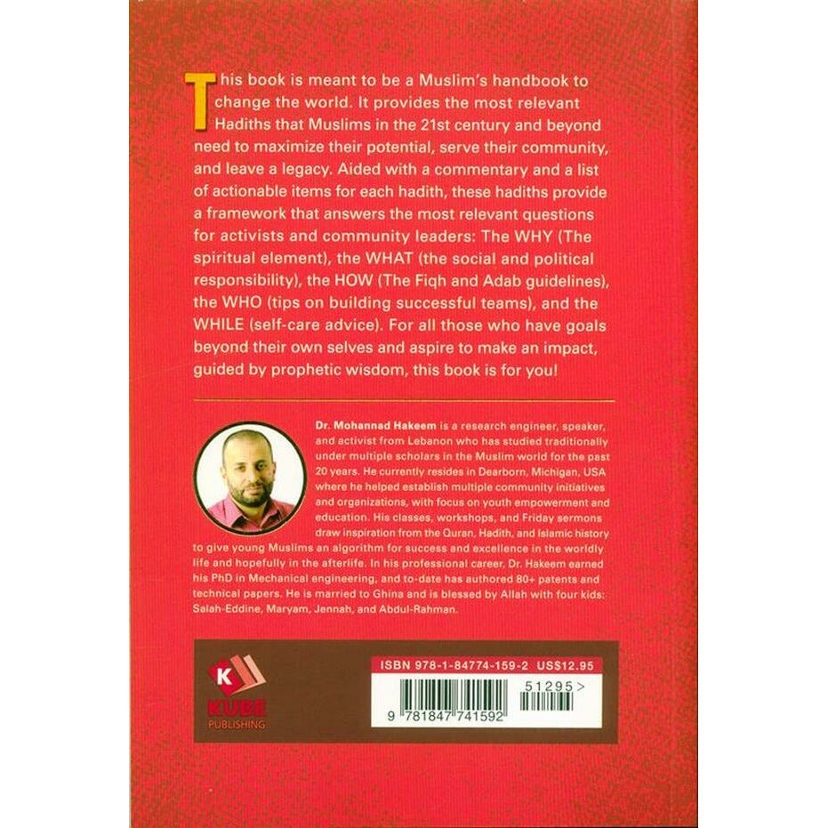 Aided with a commentary and a list of actionable items for each hadith, these hadiths provide a framework that answers the most relevant questions for activists and community leaders: The WHY (The spiritual element), the WHAT (the social and political responsibility), the HOW (The Fiqh and Adab guidelines), the WHO (tips on building successful teams), and the WHILE (self-care advice).