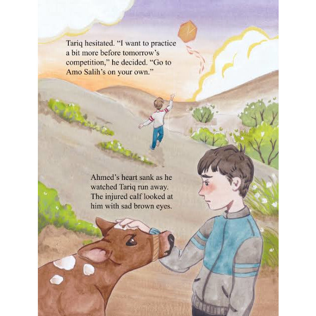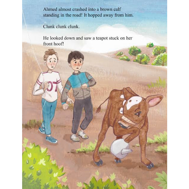 Ahmed is very excited about the annual kite-flying competition, but the day before the big race, everything goes wrong. His kite gets destroyed, then he gets stuck taking care of a calf walking around with a teapot for a shoe! He needs to get a new kite, but there isn't much time left. He only has until sunset...