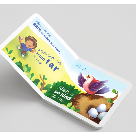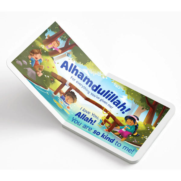 - Captivating illustrations featuring boys and girls from different cultures all enjoying Allah’s kindness.