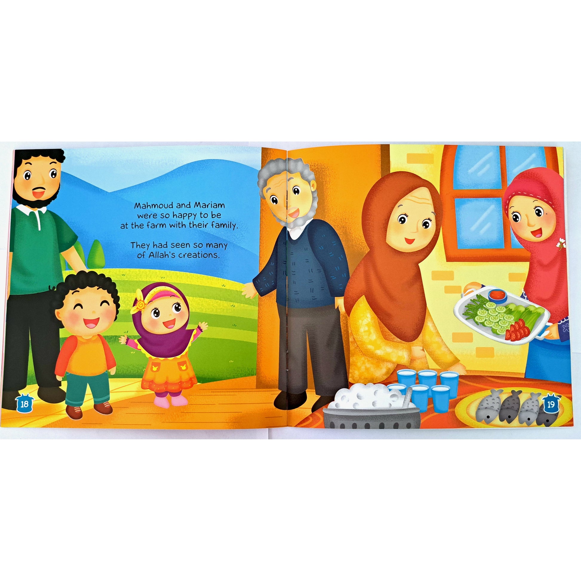 School holidays have begun, and Mahmoud and Mariam can’t wait to visit Grandma and Grandpa’s farm. But what starts as a fun family trip soon becomes a journey of discovery, one that teaches them deep lessons about Allah, The All-Knowing and Most Merciful.