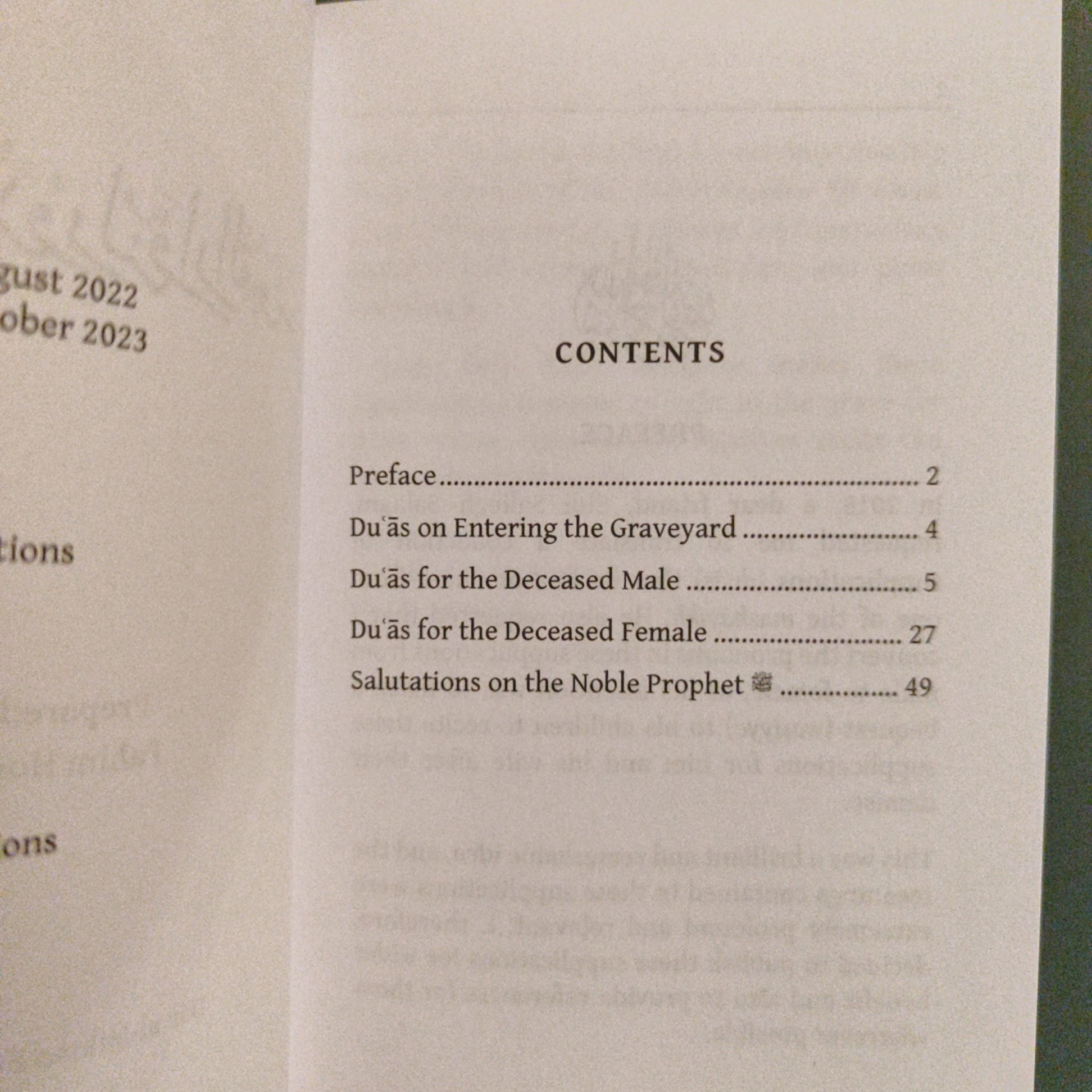This booklet contains a collection of supplications (duas) sourced from the blessed words of the Noble Prophet SAW, his companions (sahäba RA) and other later scholars and pious individuals, which can be recited by children for their parents after their demise or by any other relatives for their loved ones.