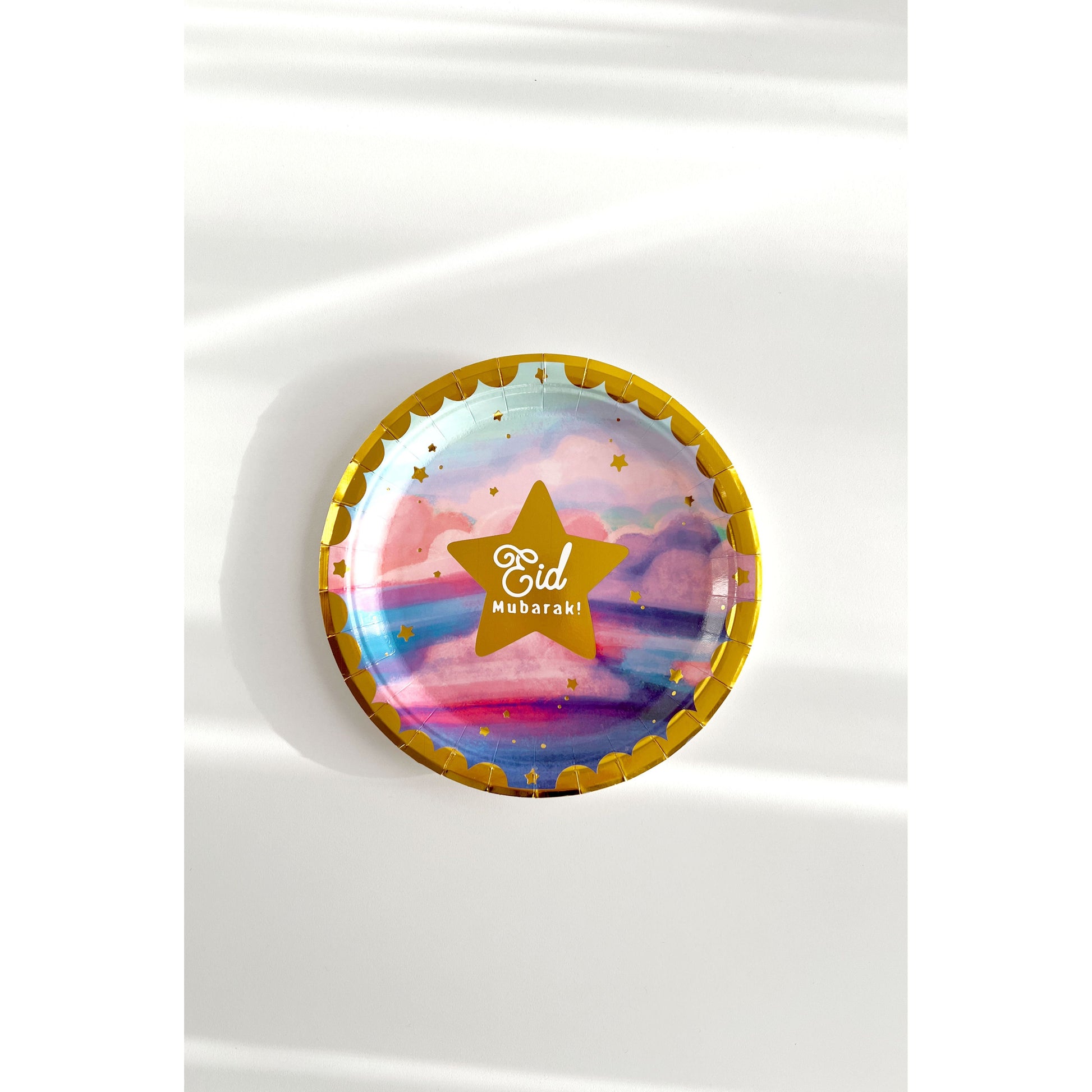 Looking for eye-catching Eid party decor with no fuss at all? Save time and find everything in this cheerful cloud design party set, with beautiful gold foiling.