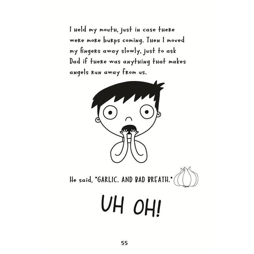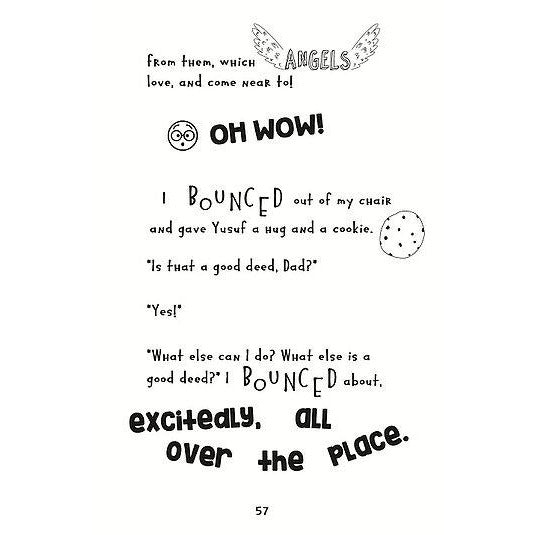 'I'm Eliyas. I'm really good at explaining things my adults told me about, which is handy for you if you're curious about Angels. My family is kind of wacky, you'll hear lots about them too, and the funny things that happen to us, but mostly about angels.