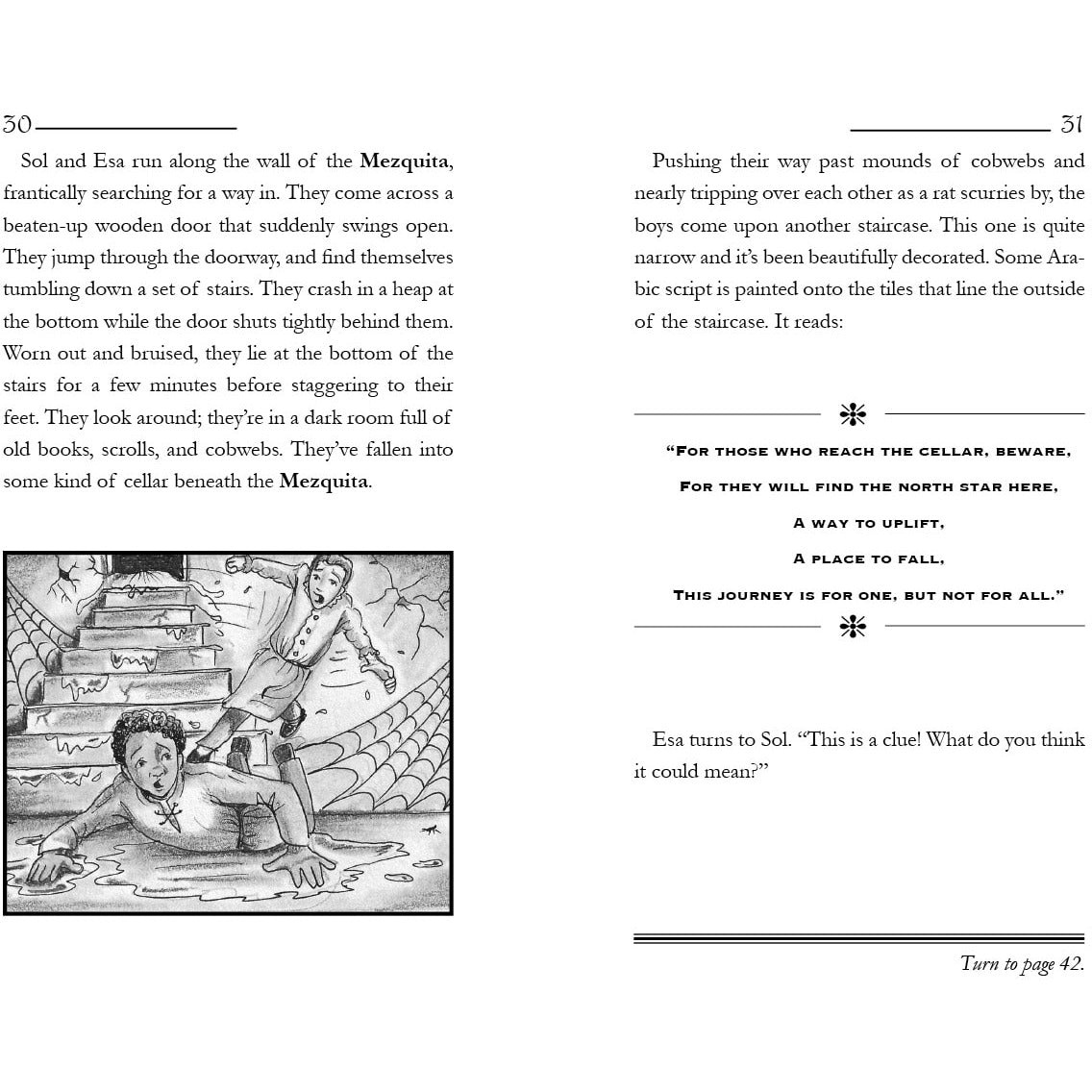 Can Esa and Sol find Zarkali's missing astrolabe? Help them choose what to do on their adventure as they search for it. The right choices will lead to discovering some ancient missing Hebrew and Arabic scriptures along the way, and the wrong choices will lead to dead-ends.