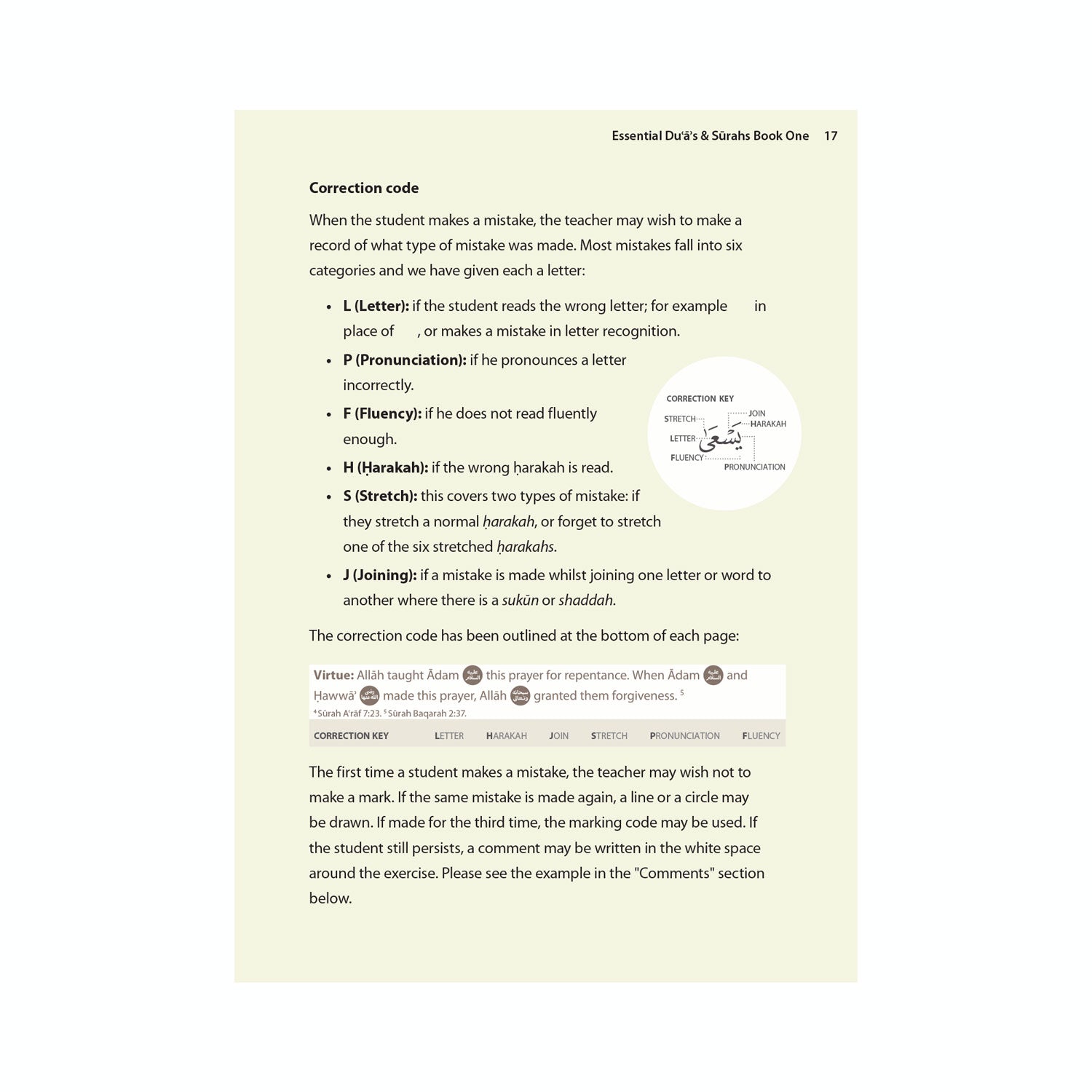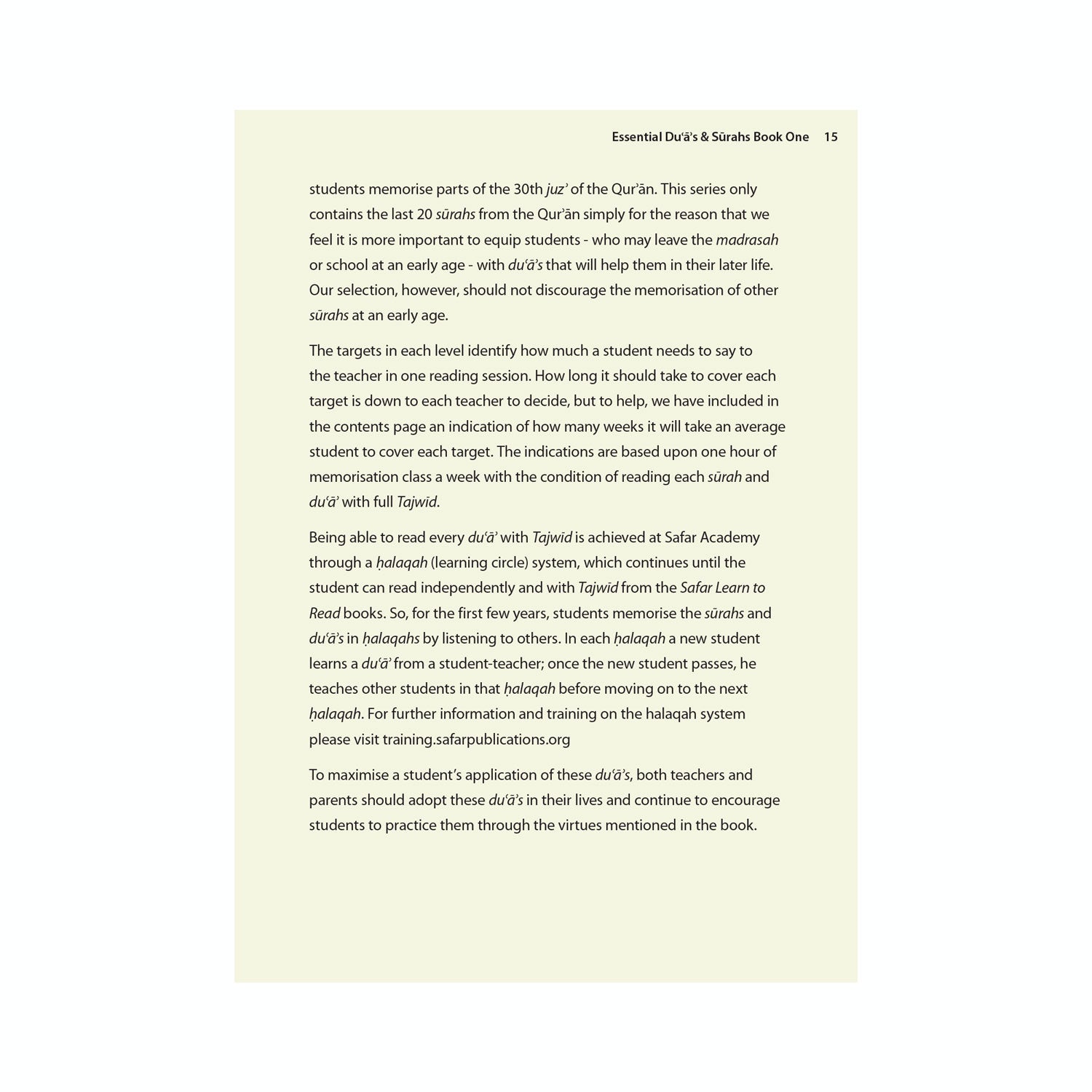 The books balance the need to learn duas as well as surahs by merging the two into the syllabus