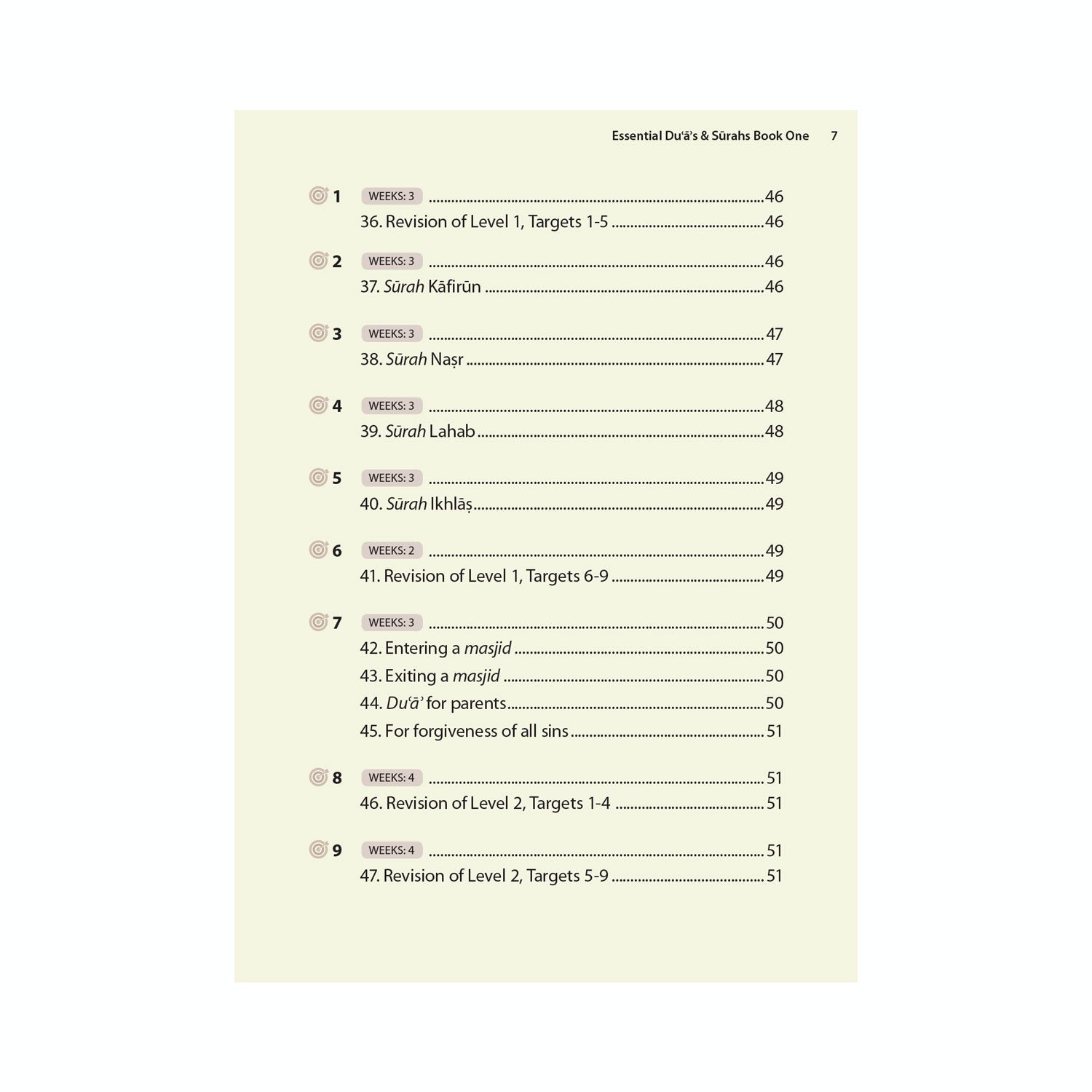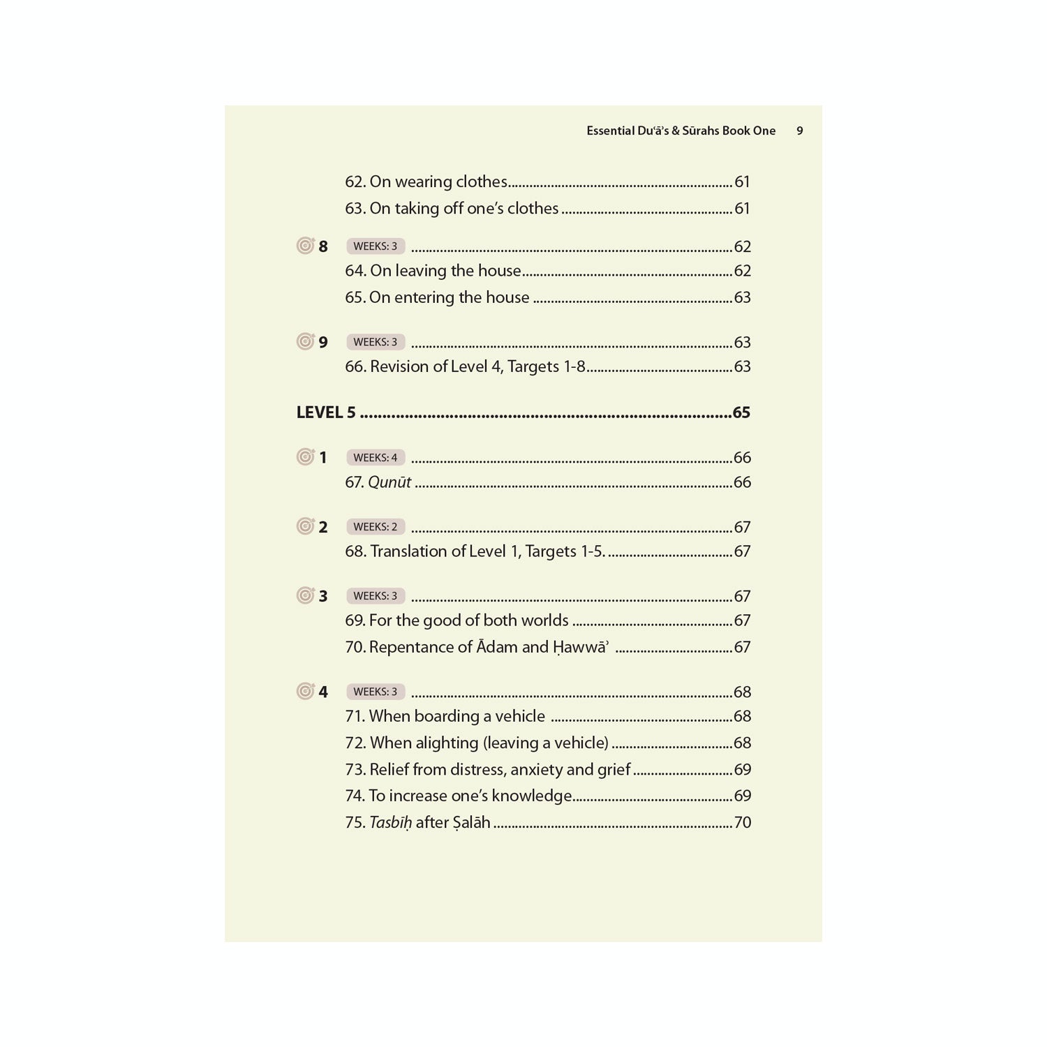 The sylllabus has been devised to include duas for all important parts of a Muslim’s life