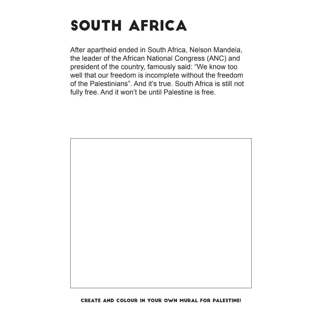 “From the River to the Sea” is an educational colouring book that provides a gateway into the story of Palestine. Through a series of stunning illustrations, Soweto-based Nathi Ngubane, tackles the injustice of the Nakba, delves into the history and culture of the land, and introduces young readers to the key concepts driving and sustaining Palestinian resistance.