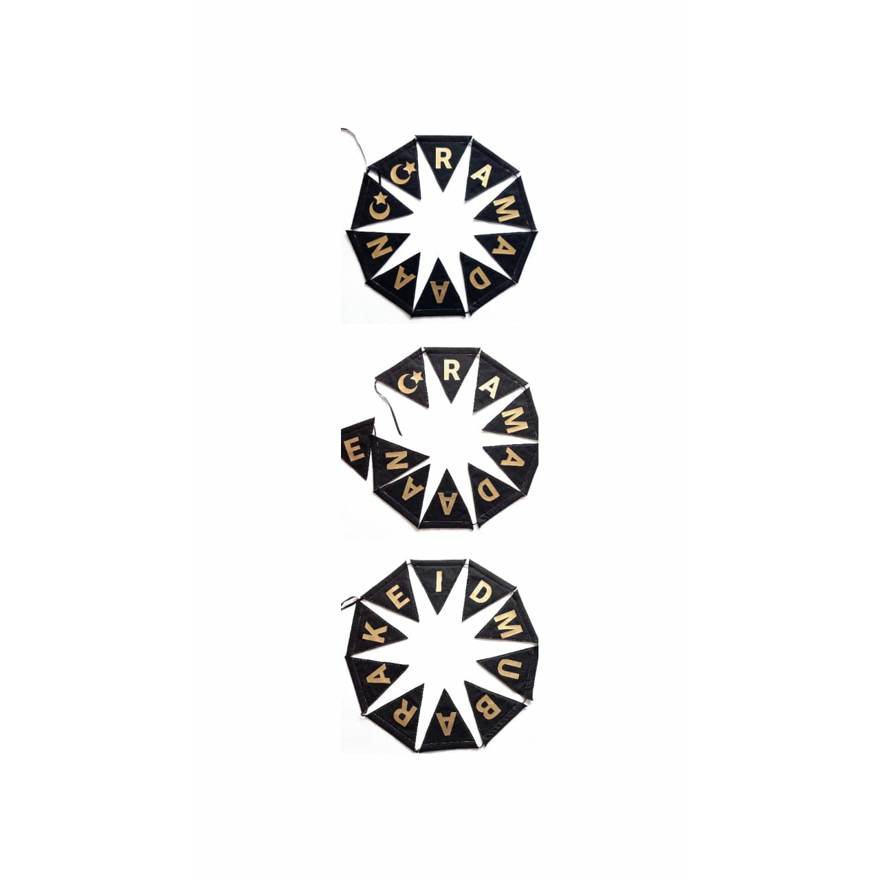 Handmade Ramadaan & Eid Felt Bunting - Black & Gold (Double Sided)