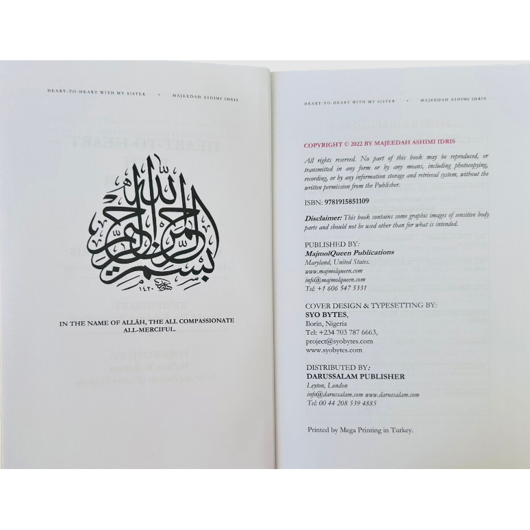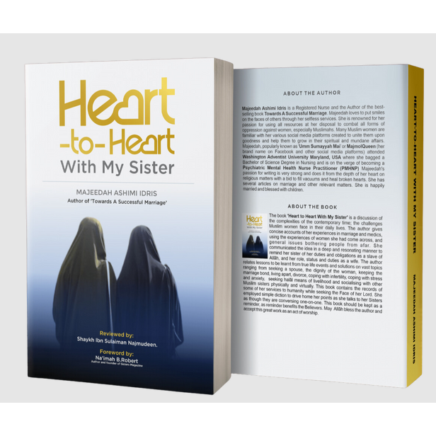 A discussion of the complexities of the contemporary time; the challenges Muslim women face in their daily lives. The author gives concise accounts of her experiences in marriage and medics, using the experiences of women she had come across, and general issues bothering people from afar. She communicated the idea in a deep and resonating manner to remind her sister of her duties and obligations as a slave of Allāh, and her role, status and duties as a wife.