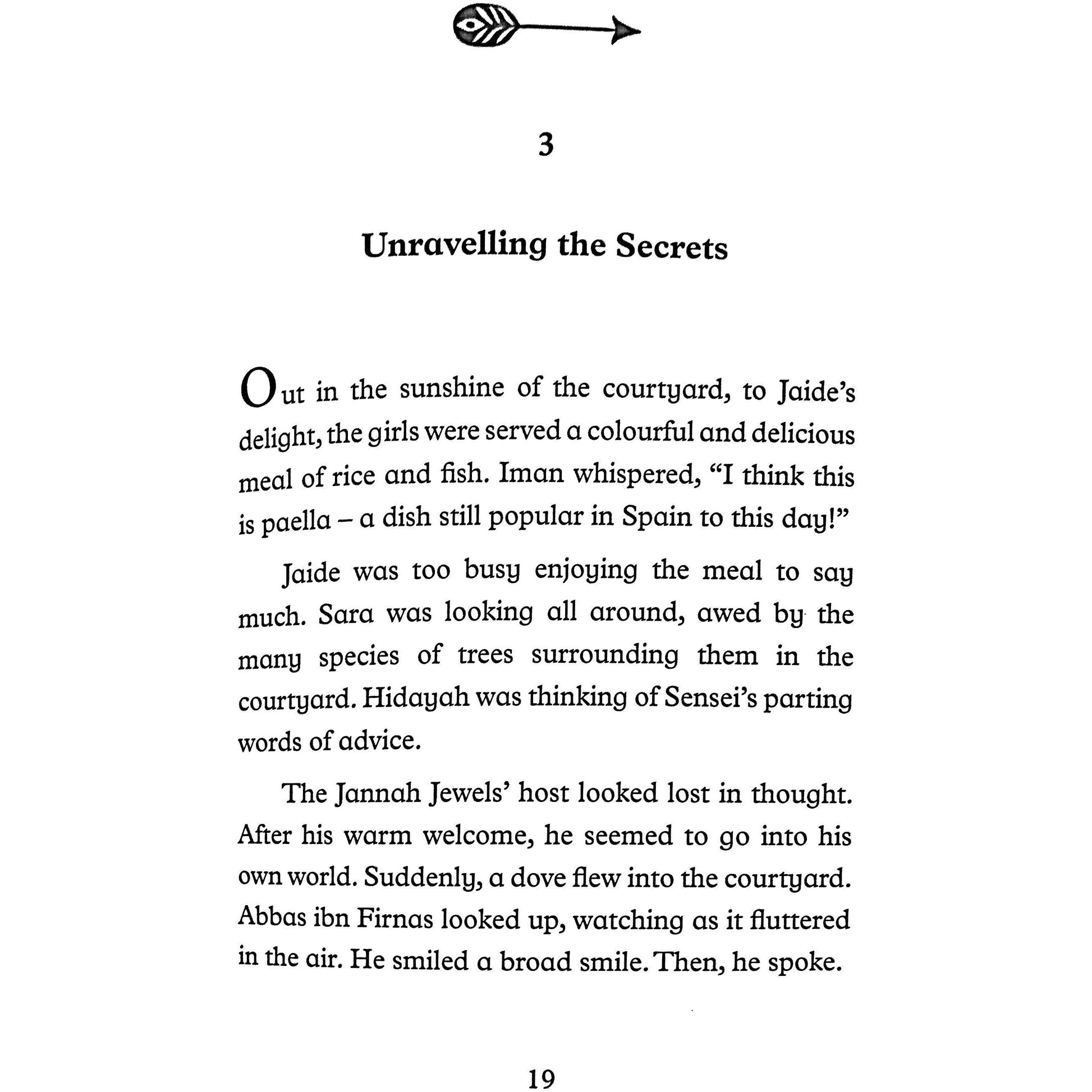 In this book, the Jannah Jewels meet Abbas ibn Firnas, one of the first men to attempt glider flight and lives to tell the tale! Then, a mysterious girl with steel-grey eyes travels back into time to help Jaffar! Who is this girl? Will the Jannah Jewels find the missing artifact before Jaffar, outsmart the mysterious girl, and return back in time to the Golden Clock?