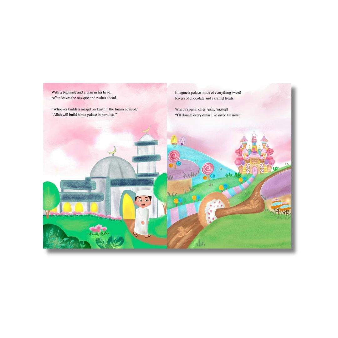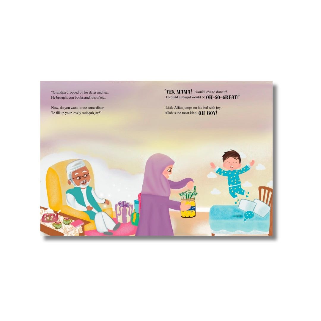 When Little Affan notices his sadaqah jar is empty, he worries he won’t be able to build his dream chocolate palace in Jannah. But soon, he learns that filling the jar doesn’t always require money - there are simple, joyful ways to give that count too! This charming read‑aloud story introduces children to the beauty of sadaqah (voluntary charity), showing how even the smallest good deeds can bring immense rewards from Allah. With lyrical storytelling and a heartwarming message, it inspires young readers to see kindness as a treasure that grows their faith.