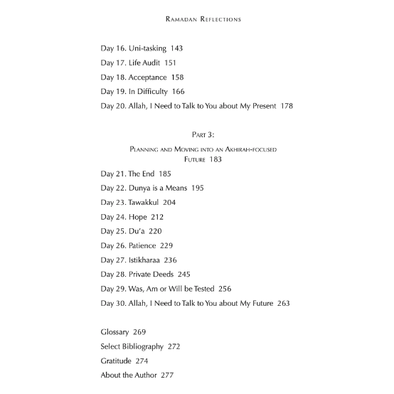 'This book is a beautiful unique day-by-day companion throughout the Holy Month, engaging the Believer's reflections as they are immersed in the worship of Allah, and encouraging the journaling of those thoughts as the book moves them to take steps towards Him.' - Dr Omar Suleiman