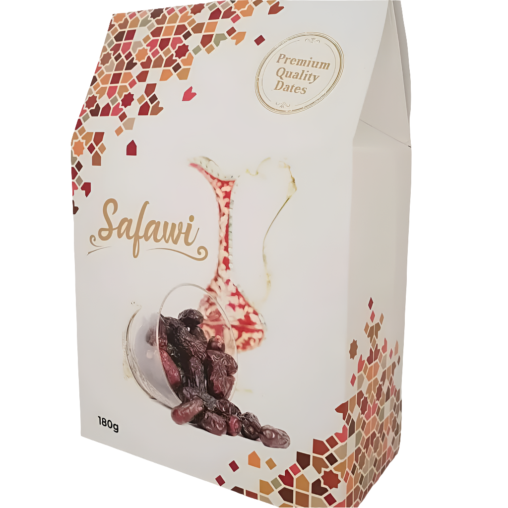 Safawi dates are soft and semi-dry. They can be identified by their particularly deep black colour and are similar in taste to Ajwa.