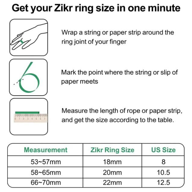 The Smart Zikr Ring is a smart tasbih counter & salaah reminder, linking to your smartphone and to the iQibla app via Bluetooth. The app keeps a record of all the zikr which you have done throughout the day, and allows you to make use of the salaah notifications, reminding you of your five salaah & zikr - an excellent way for you to keep track of all your prayers and zikr.