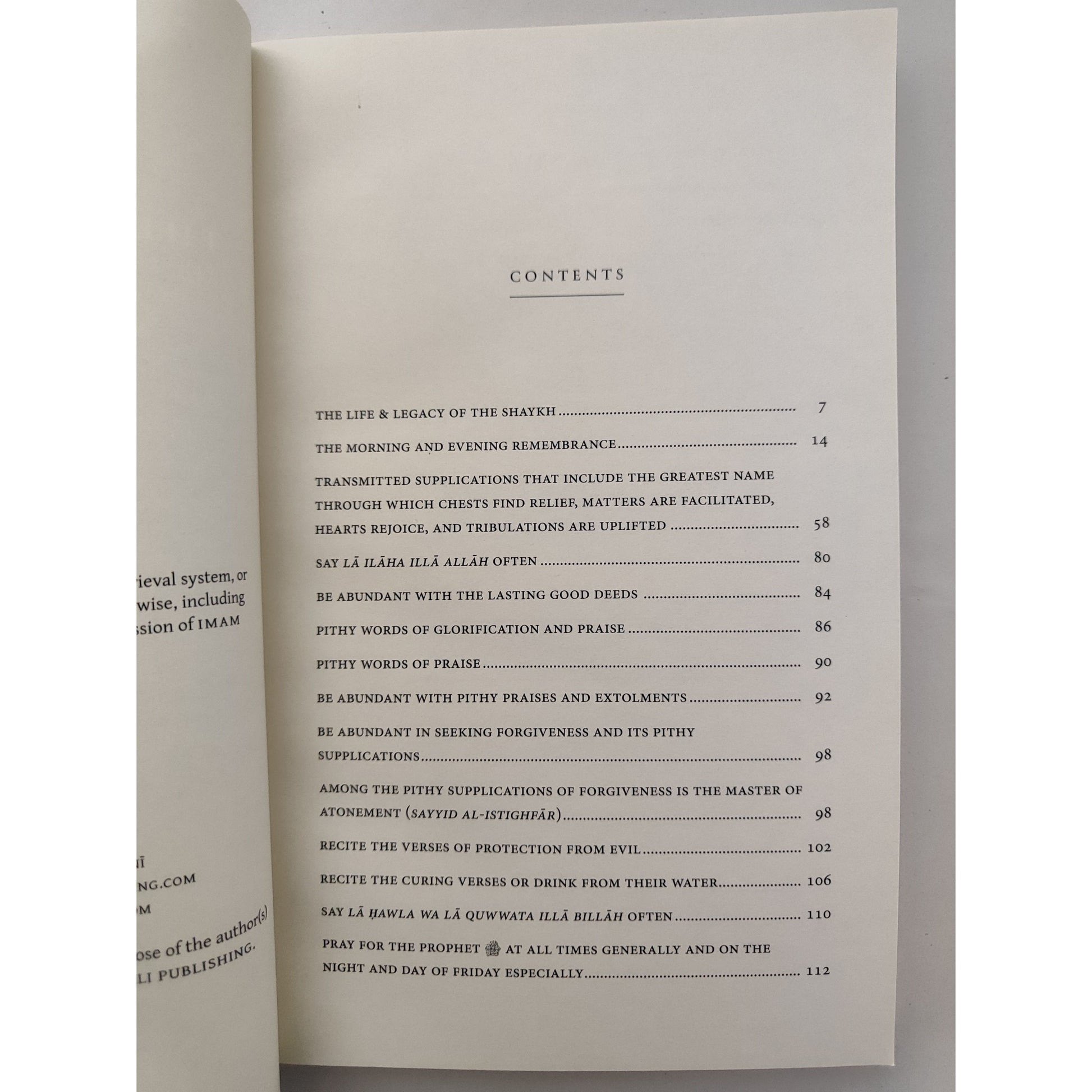 Compiled by the great Imam, Mufassir, Muhaddith, and Shaykh 'Abdullah Siraj al-Din al-Husayni, this text includes several hundred prayers known from the Qur'an and Sunnah, suitable for frequent and everyday use. It begins with a comprehensive sequence of Prophetic supplications recommended for each morning and evening, it then continues with chapters of selected du'a with specific purposes.