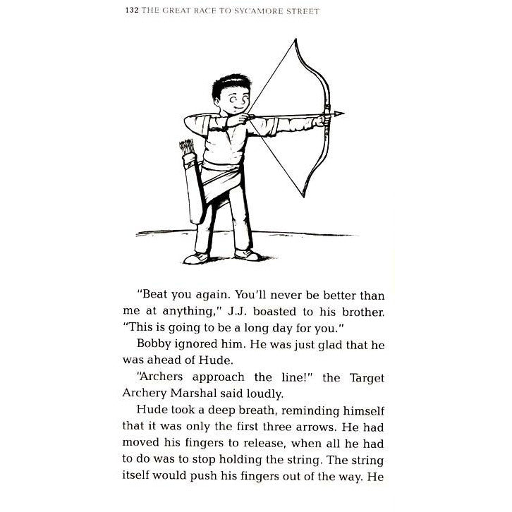 With Grandma Hana's new neighbour planning to pull down her prized peach tree and a gang, led by the archer Bobby, marshaling the local lake, Hude and Amani have a hard time getting any peace. In this warm and comical story, find out how, under the watchful eyes of Grandma Hana, Hude and Amani plan to save the peach tree and beat Bobby at his own game before leaving Sycamore Street behind.