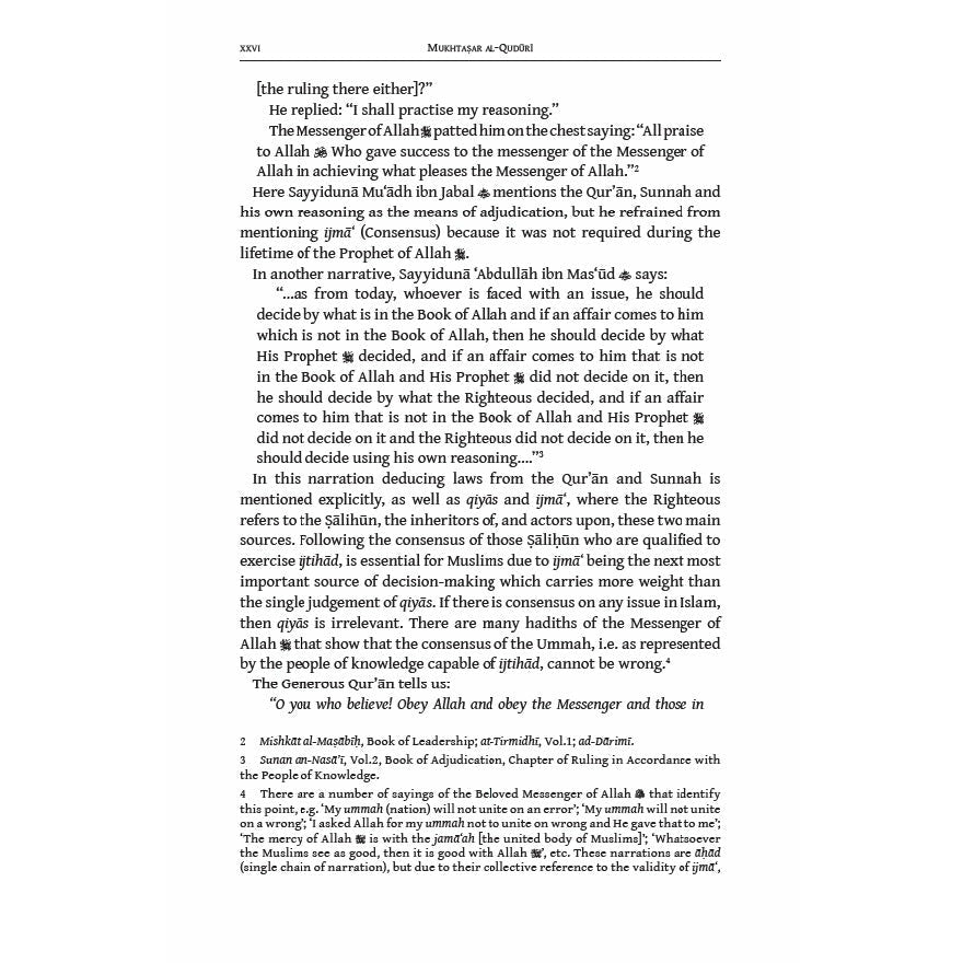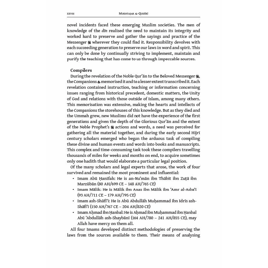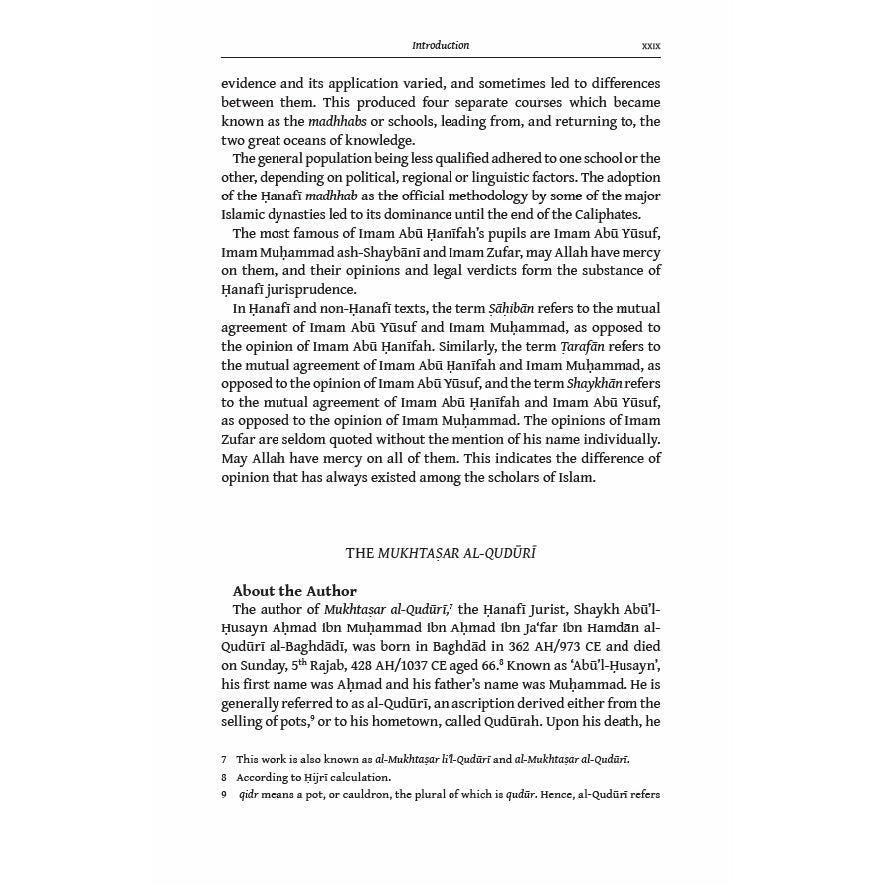 The Mukhtasar Al-Quduri is one of the most celebrated and influential treatises in any Muslim school of methodology and thought and is the foundation for the Ḥanafî school. It is both the first source for scholars and a manual for the general reader.
