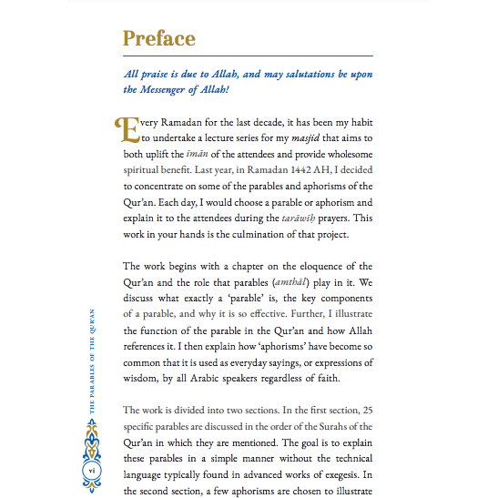The Qur’an is the word of Allah, it is the most eloquent and best of all speech. The Qur’an uses different rhetorical devices and parables to convey its message. Allah conveys to us facts, stories and examples as well as guidance and warnings throughout His book. Allah says in the Qur’an: ‘We have given every type of parable in this Qur’an so that they can understand and think’. This beautiful book will take 28 parables and aphorisms in the Qur’an and explain their context and meaning in order for us to understand, reflect and change our lives.