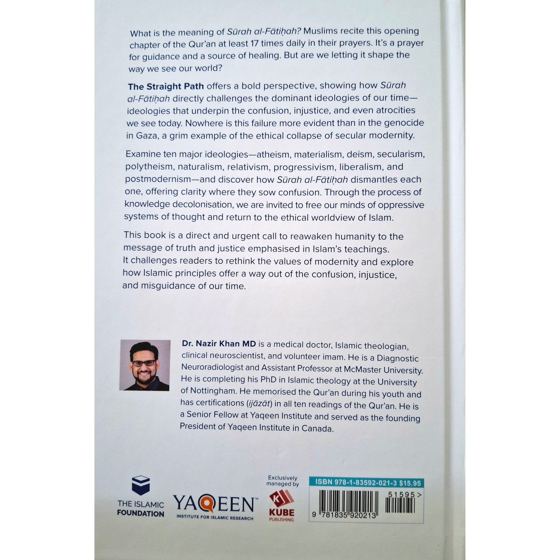 'The Straight Path' presents a courageous and thought-provoking lens on Surah al-Fatiha, revealing how its timeless message confronts the prevailing ideologies that fuel today’s moral confusion and systemic injustice. In a world shaken by atrocities most tragically exemplified by the genocide in Gaza, the surah stands as a divine critique of secular modernity’s ethical breakdown. This book calls readers to reexamine the foundations of truth, justice, and human dignity through the Qur’an’s unwavering guidance.