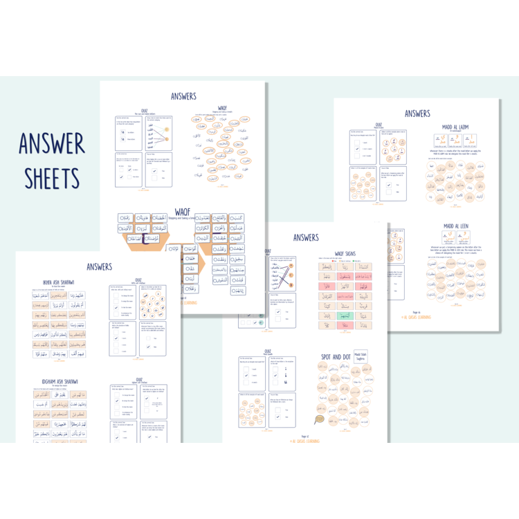 We all have to learn to recite the Quran correctly with tajweed, so why not make it fun with simple and engaging hands-on activities? In this workbook you will find the tajweed rules explained visually with a clear and easy explanation, which is then followed by a hands-on activity and a quiz to help your children grasp the concept. The bitesize, engaging and colorful worksheets help your little ones to learn without feeling overwhelmed. The workbook allows your children to work independently helping them become more confident.
