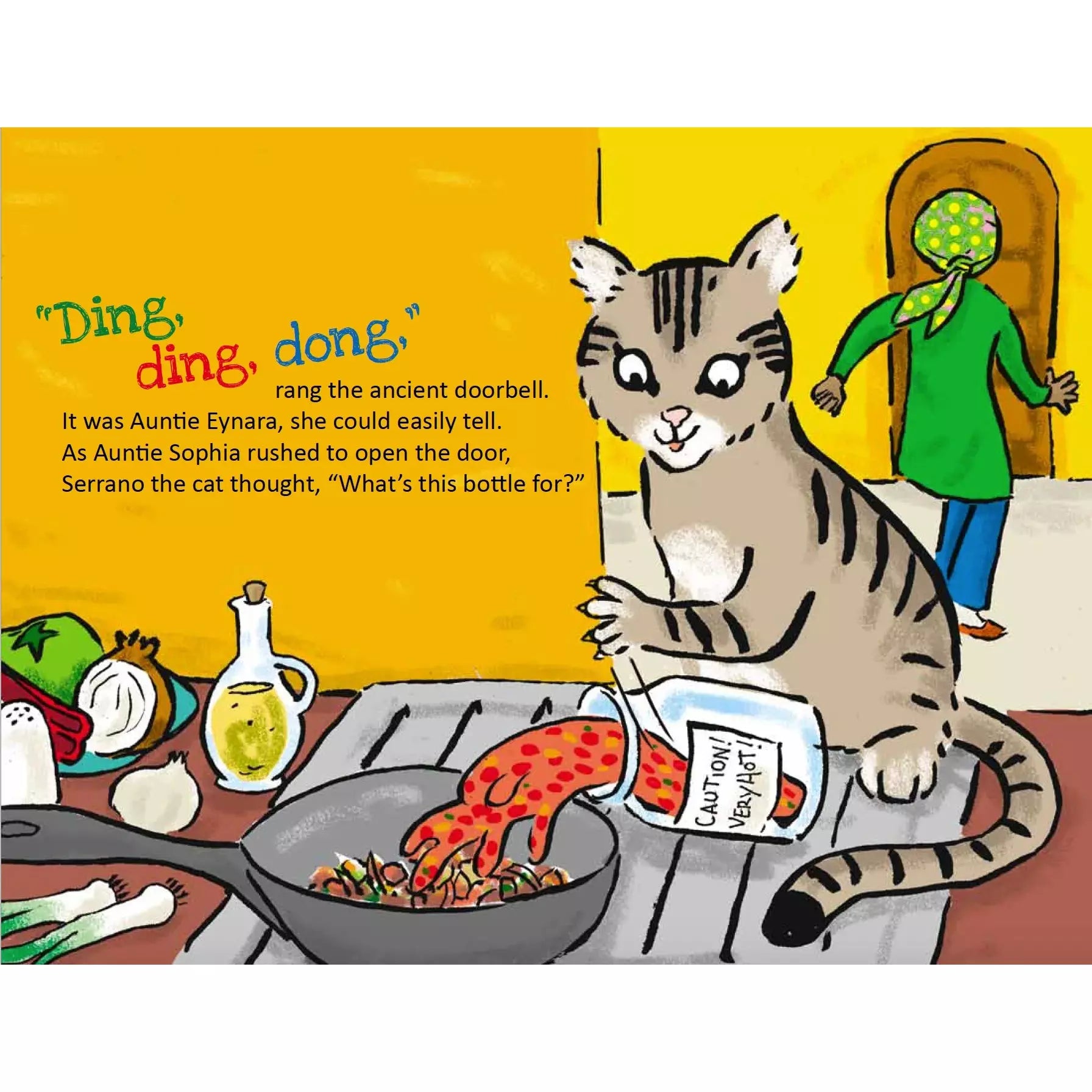 Auntie Sophia is making her special out-of-this-world samosas for the mosque iftar. But what this samosa pro doesn't know is that her kitty, Serrano, has some sneaky plans to alter her recipe! What will happen when she accidentally swallows a far too spicy pastry WHOLE?