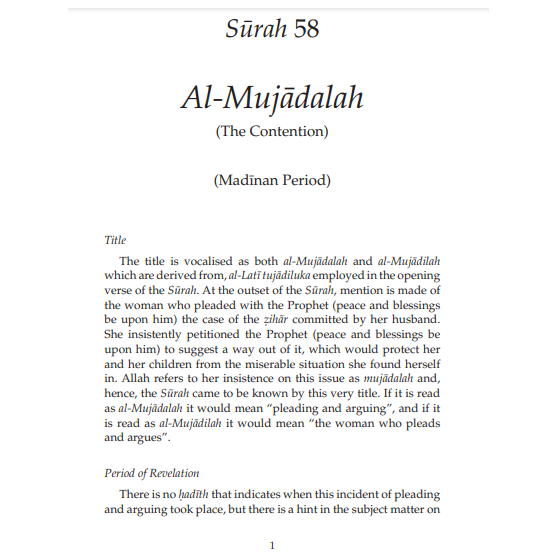 This volume covers Surah 58 – 65 of the Holy Qur'an. Each surah is prefaced by an account of the background and teachings.
