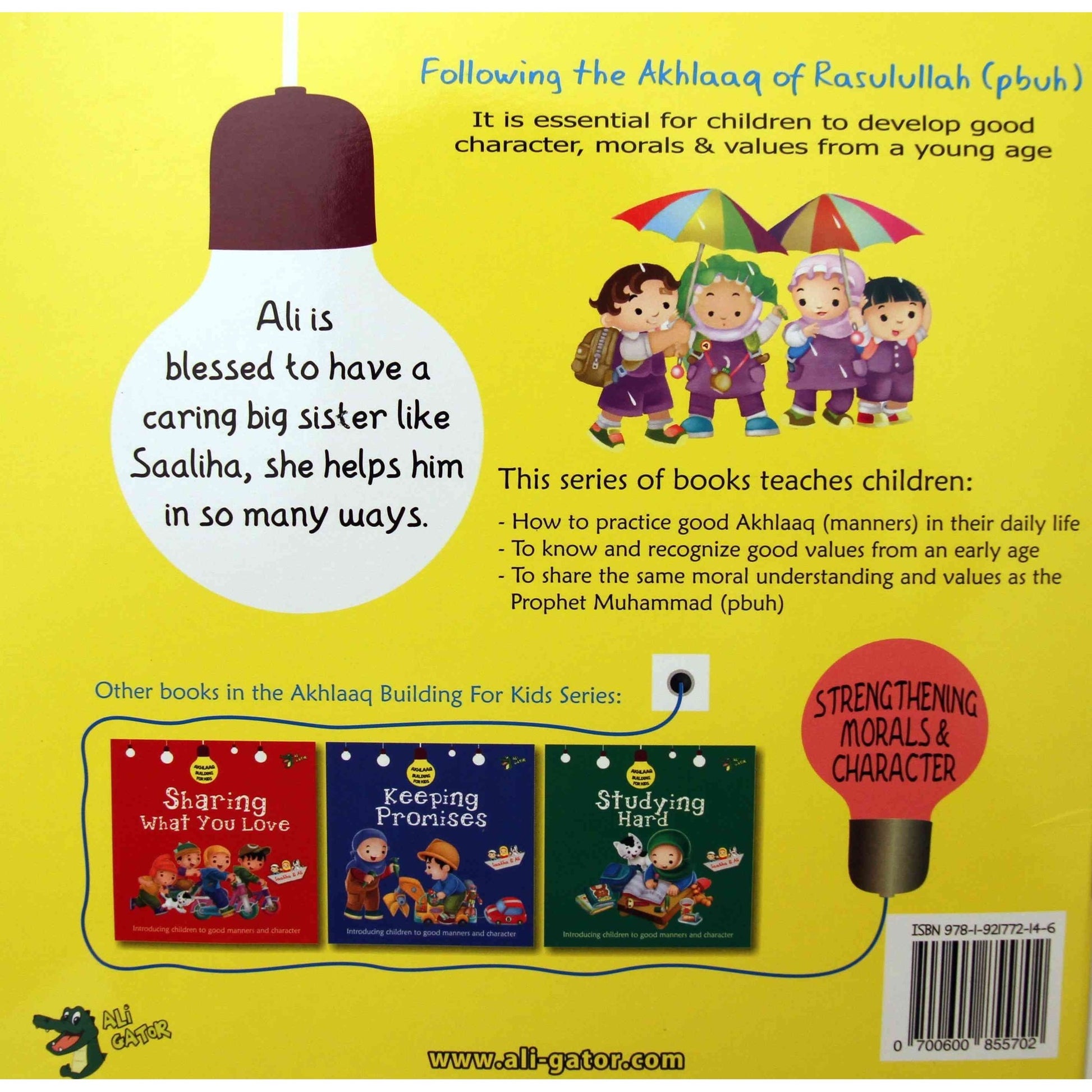 Part of the Akhlaaq Building series, this book teaches children about helping others. Ali is blessed to have a caring big sister like Saaliha, she helps him in so many ways.