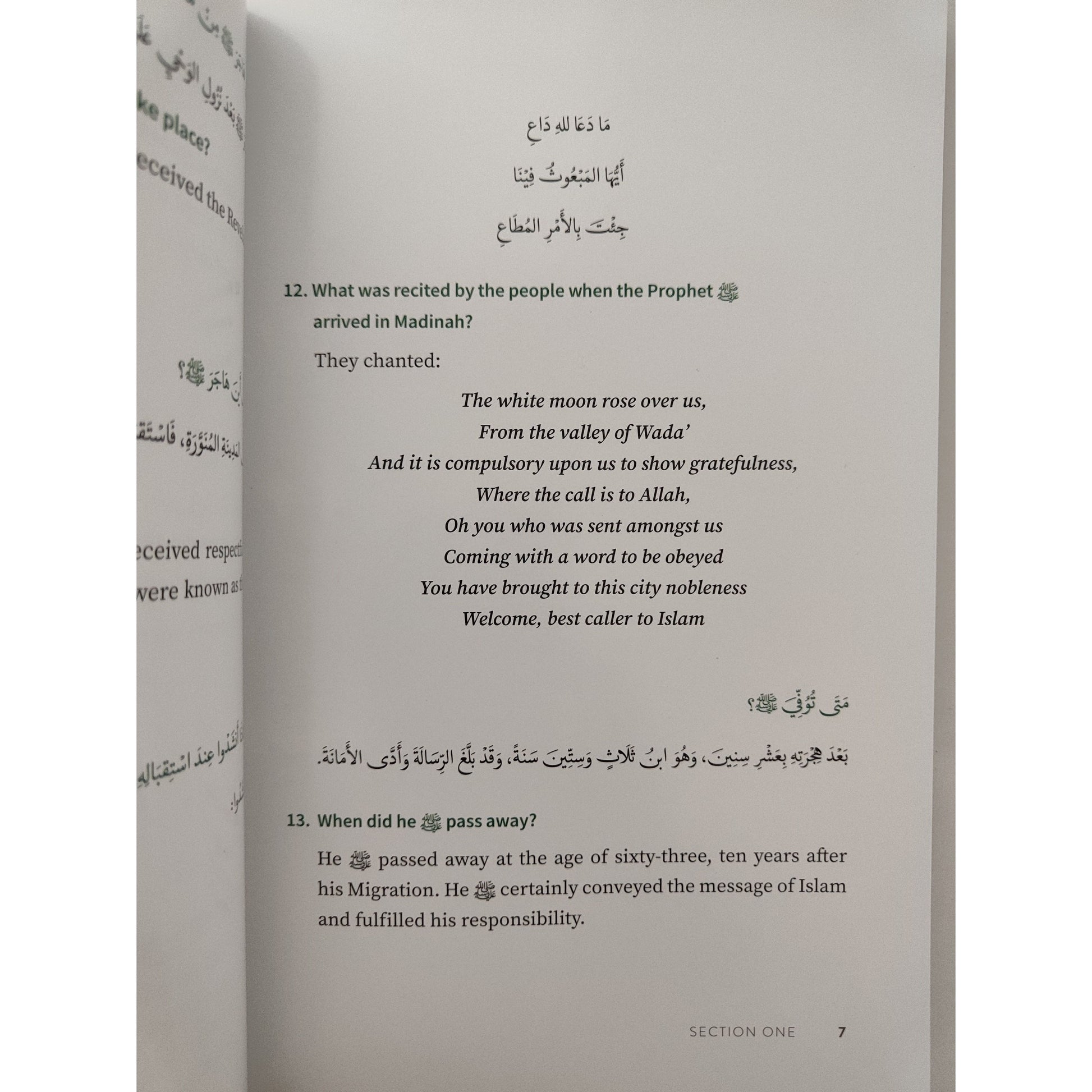Who is the Prophet Muhammad SAW is primarily a didactic text in question & answer format. The book consists of 6 groups of questions & answers, progressing from relatively simple questions and short answers in the first group, to more complex issues with longer, more detailed explanations by the end. Each question & answer pair is given first in Arabic, as formulated by Habib 'Umar, or by his students under his supervision. Then, the translation of each Q & A is given. While perhaps not common in adult literature, the Q&A format is a time-honored teaching technique, and readers of all ages and levels will find surprising benefits in this unique text. The entire book has been beautifully arranged and presented by IGI’s world-class design team, to make reading an enjoyable and visually appealing reading experience for the whole family.